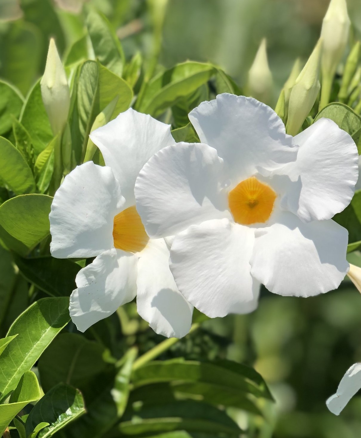 | Mandevilla Sun Parasol 'Giant White' | Giant White Sun Parasol Mandevilla | Sun/Pt Shade | White | more info |